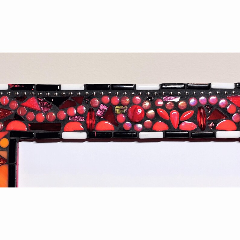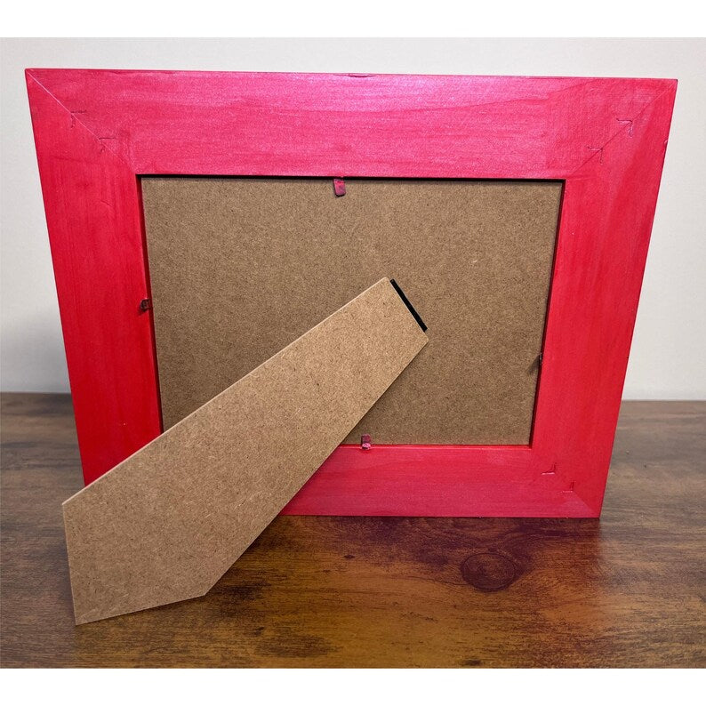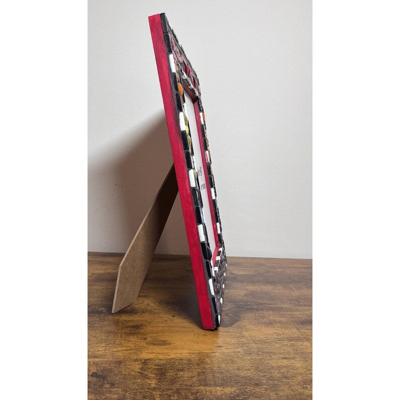 Brighten your decor with this unique 8 x 10 rainbow textured photo frame! shining mirrors to textured tiles, this colorful assortment of elements will create a stylish and elegant display. You'll love how the rainbow patchwork provides a pop of cheerful color to any room! The frame is painted bright red